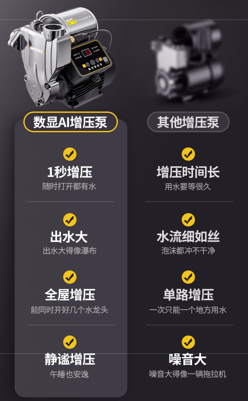 | 品牌 | 威猛 | 商品名称 | 威猛【上门安装】德国家用增压泵自吸泵热水全自动井水管道全屋抽水泵 480W数显AI防冻/缺水保护 |