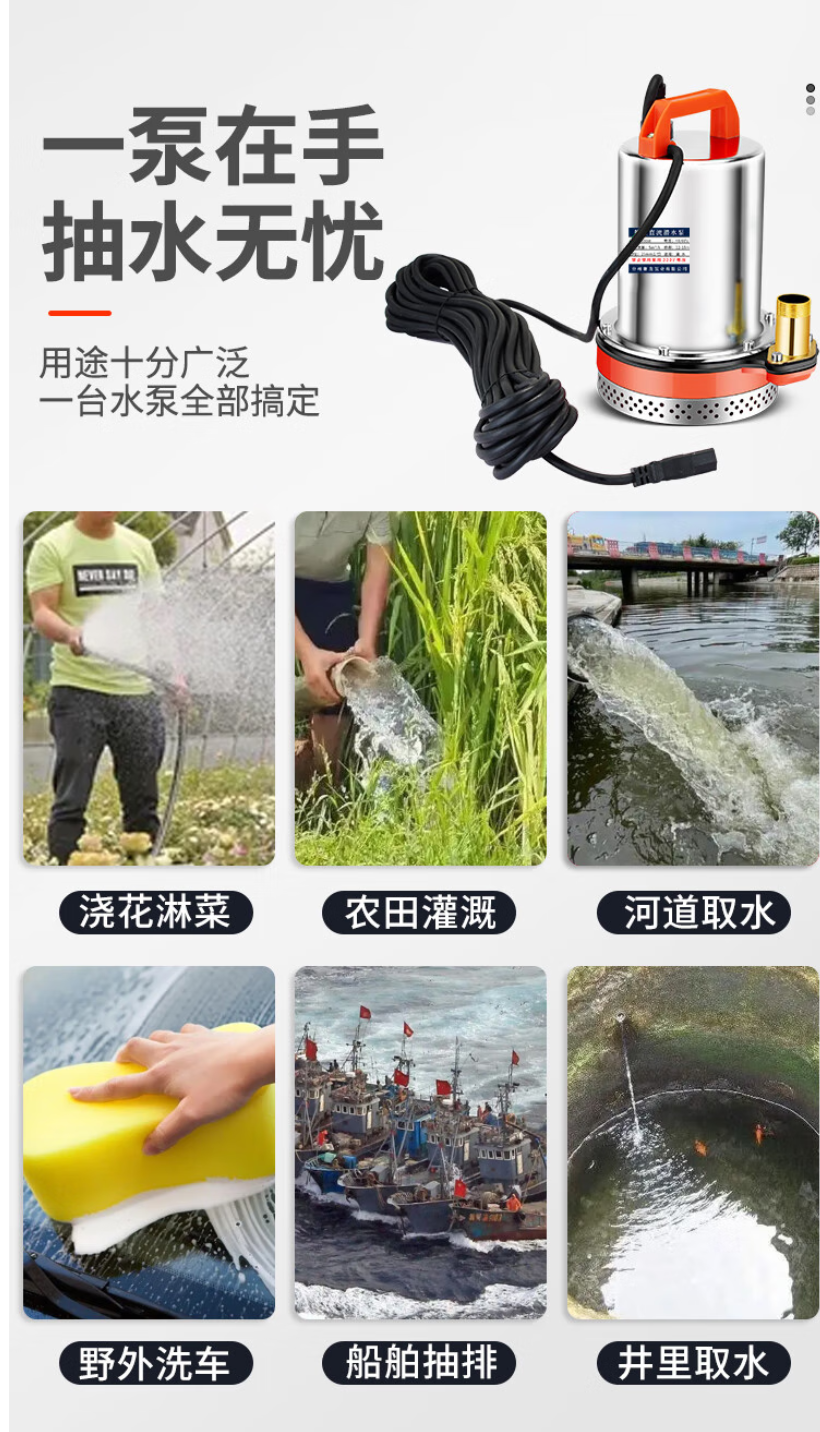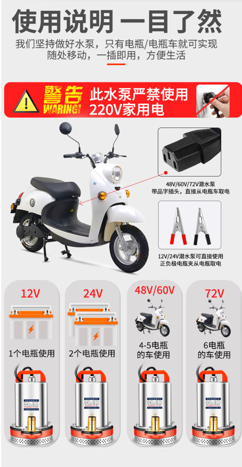 | 品牌 | 牧浪 | 商品名称 | 牧浪直流潜水泵12V24V48V60V72伏电瓶车电动车水泵小型灌溉农用抽水机 1寸48V60V15米线【10米帆布管】 |
