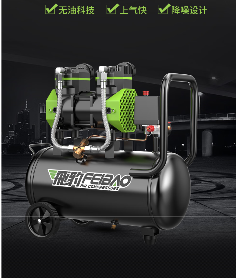 | 品牌 | 飛豹(FEIBAO) | 商品名称 | 飛豹(FEIBAO)低音无油空压机小型220V工业级空气压缩机木工钉枪喷漆汽修打气泵 10L-800W经典4级低噪款 |