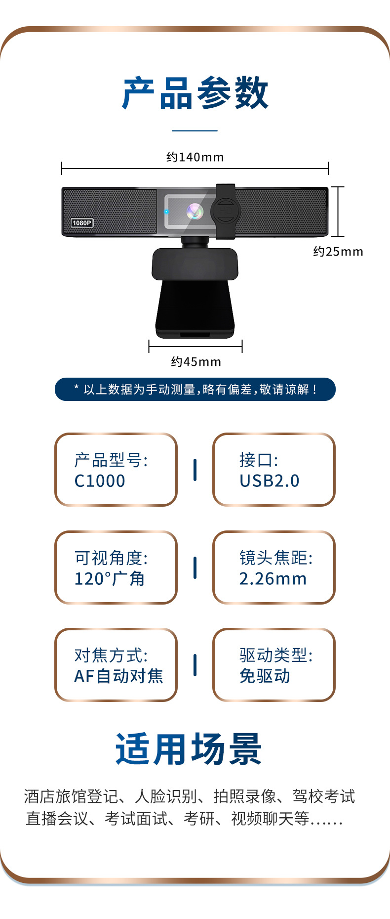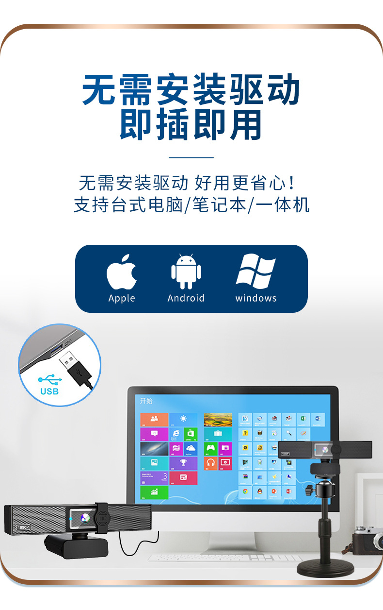 | 是否需要驱动 | 免驱动 | 使用范围 | 台式机,笔记本,视频会议 |