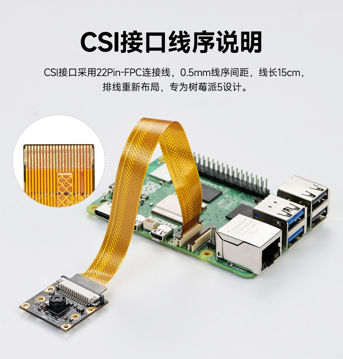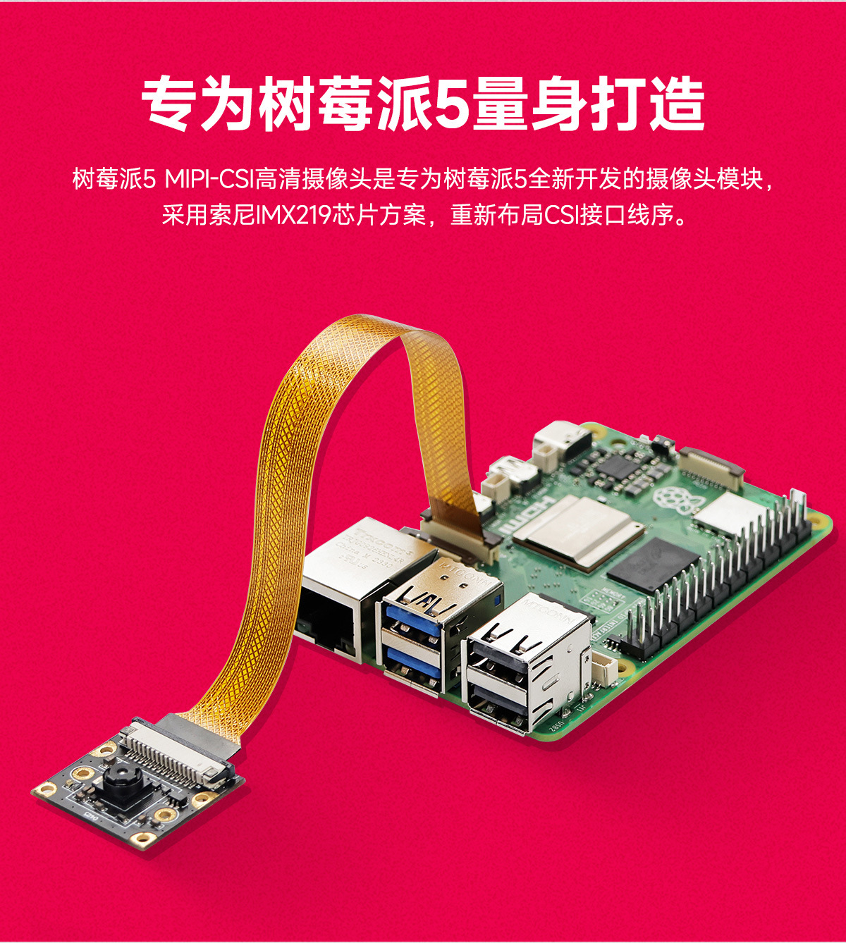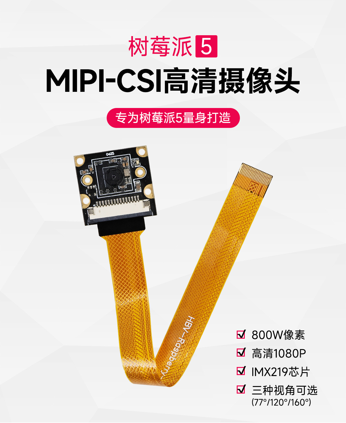 树莓派5代CSI高清摄像头pi5 800万Camera视频IMX219模块MIPI相机